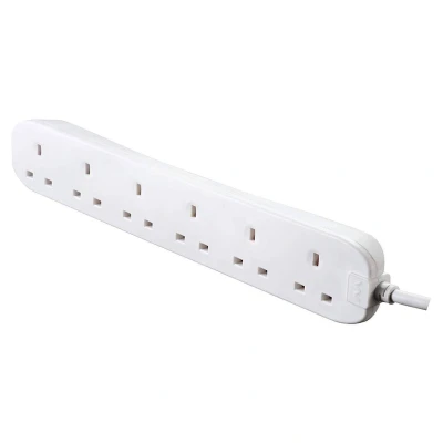 Masterplug Six Socket Extension Lead, 1 Metre, White