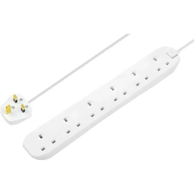 Masterplug Six Socket Extension Lead, 3 Metre, White