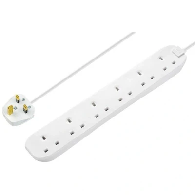 General description This 6-gang extension lead provides multiple power outlets for household and DIY use. It features a slim, rounded design with safety shuttered sockets to ensure safe operation. The cable length is 2 meters, making it suitable for various applications around the home or workshop. Technical specifications Number of sockets: 6 Cable length: 2 meters Fuse rating: 13 amps Voltage: 240V Color: White Compatibility and accessories Compatible with standard UK plugs and devices requiring 240V power supply Can be used with various household appliances, tools, and electronic devices Installation Designed for plug-and-play use; no installation required Can be wall-mounted using the built-in fixing slots for convenient placement Usage Ideal for extending power supply to multiple devices in home, workshop, or DIY projects Suitable for powering tools, lamps, chargers, and other electrical appliances