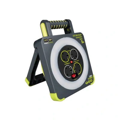 The Masterplug Work Light Cable Reel is the ultimate solution for professionals seeking a reliable source of portable power combined with efficient lighting for a variety of applications, whether at home or in heavy-duty environments. This device not only illuminates your workspace with an impressive output of 550 lumens but also provides convenient access to electrical power through its four shuttered sockets.