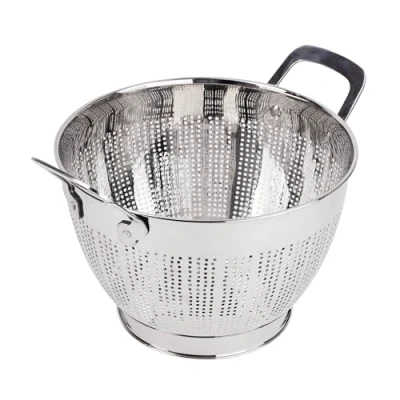 Set Of 5 Stainless Steel Bowls Large 25 cm Colander with Handle Vegetable Drainer