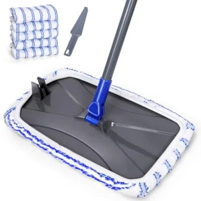 Masthome Large Surface Microfiber Flat Mop with 5 Reusable Heads Cleaning Comb and Telescopic Handle for Hardwood Laminate Tile Ceramic Floor