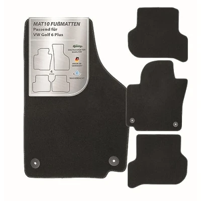 MAT10 Silver Line: VW Golf VI Plus 2008 10 2014 08 Car Floor Mats Velour Premium Quality 4 Piece Black Fit