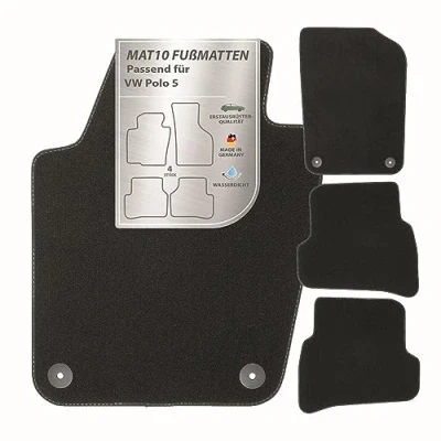 MAT10 Silver Line: VW Polo V Small Car and Cross CityVan Year of Manufacture 2009 03 2014 05 Floor Mats Velour Premium Quality 4 Piece Black Fit