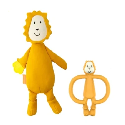 Matchstick Monkey Plush Toy Sensory Teething Teddy Gift Set, Soft Cotton, Filled with Beads, Antimicrobial Protection, 3 Months +, Lion