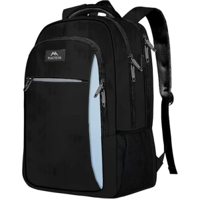 MATEIN Travel Laptop Backpack, Work Bag Lightweight with USB Charging Port, Anti Theft Business Water Resistant School Rucksack Gift for Men and Women, Fits 15.6 Inch, Black Blue