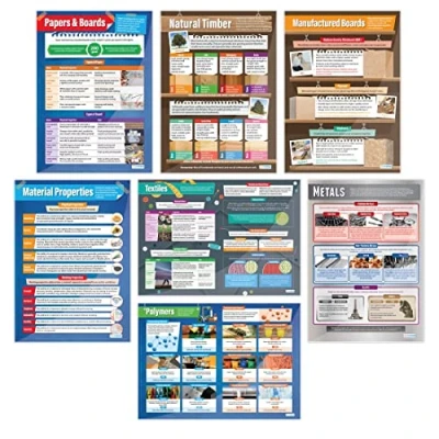 EDUCATIONAL CHARTS DESIGNED BY TEACHERS: Our set of 7 Materials & Their Properties posters help students to learn, engage and remember more information than ever before. Covering a range of core topics, these unique school posters can play a vital role in improving both students' understanding and classroom décor. SUPPLEMENT KNOWLEDGE: Our educational school posters are colourful, beautifully illustrated and contain a huge amount of valuable information. The set of 7 Materials & Their Properties posters are specifically designed to help students gain a greater understanding of complex topics. The wall charts are a great resource for Schools, Classrooms, Design & Technology Teachers, Students, Tutors, Home School Parents and Home School Kids. MAKE LEARNING FUN: Engaging, clear and colourful designs and images create a fun learning environment in which students can excel. Our amazing wall posters can help to increase students’ interest towards Design & Technology, while recapping any key information they've been taught. LARGE SIZE – IDEAL FOR READING FROM A DISTANCE: Our school wall charts are a generous size, measuring 850mm x 594mm (A1). This ensures all posters are easily readable from a distance. Our educational posters are a fantastic way of brightening and decorating any classroom and can easily complement every type of learning environment. THE UK’s NO. 1 PROVIDER: Brought to you by Daydream Education, the UK's leading provider of educational posters for schools, with a range that spans over 25 subjects across key stages 1 – 5. By combining a bold, visual approach with simple, concise information, we have provided over five million resources to more than 50,000 classrooms worldwide.