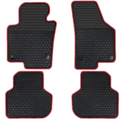 Matericuo Car Floor Mats Custom Fit for 2010 2018 Volkswagen Jetta Sedan Black Red Rubber Auto Liner All Weather Protection Heavy Duty Odorless