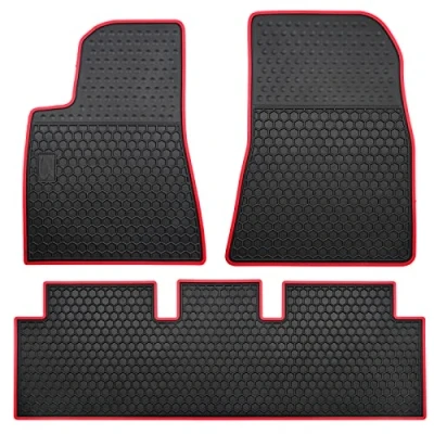 Matericuo Car Floor Mats Custom Fit for Tesla Model 3 2017 2022 Full Black Red Rubber Auto Liner All Weather Protection Heavy Duty Odorless