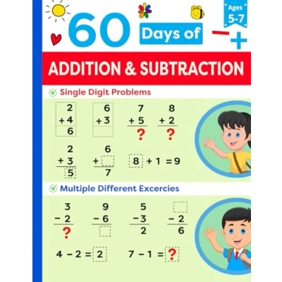 Math Ninjas Kindergarten and 1st Grade Workbook Age 5 7: 60 Days of Timed Tests Simple Addition Subtraction Single Digit Drills (Math Children Essentials)