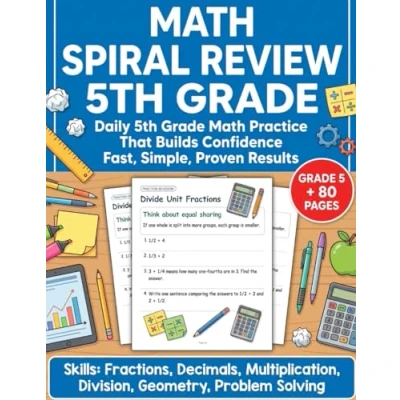 Math Spiral Review 5th Grade: Daily Practice & Workbook Grade with Worksheets, Fractions, Decimals, ... (Complete Series)