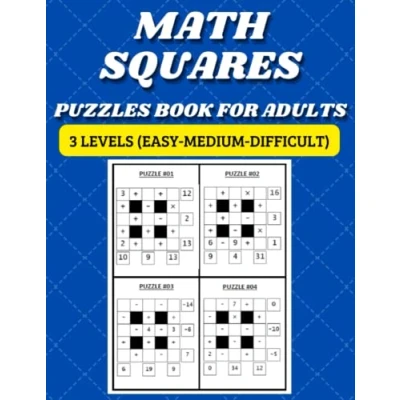 Math Squares Puzzles BOOK FOR ADULTS: The Big And Excellent Book, 3 Levels (Easy Medium Difficult), With Solutions!!!!