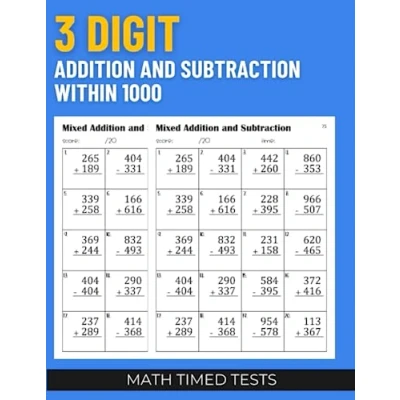 Math Timed Tests: 3 Digit Addition and Subtraction within 1000