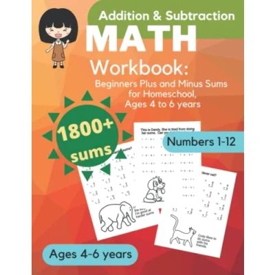 Math Workbook, Addition and Subtraction: Beginners Plus Minus Sums for Homeschool, Ages 4 to 6 years (Basic Maths Kids)