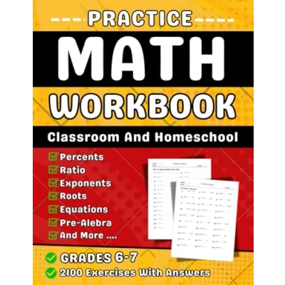 Math Workbook For Grades 6 7 Percent, Ratio, Exponents, Roots, Equations, Pre Algebra ( One & Two ), Inequalities, Simplifying, Coordinates And ... With More Than 2100 Exercises Answers