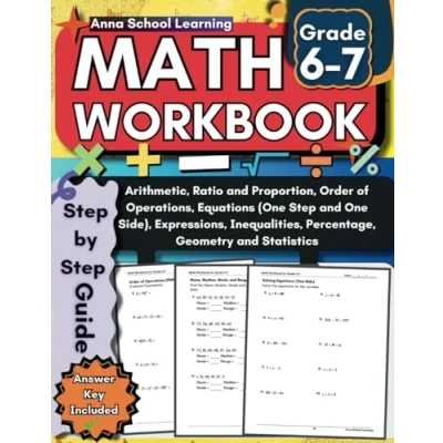 Math Workbook Grade 6 7: with Arithmetic, Pre Algebra, Ratio, Proportion, Percentage, Geometry, and Statistics Practice Worksheets: 6th to 7th ... Answers, Ages 11 13 (Math Workbooks)