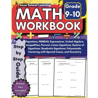 Math Workbook Grade 9 10: with Algebra, Linear, Quadratic, System of Equations, Polynomials, Factoring Special Cases, and Geometry Practice ... Answer, Ages 14 16 (Math Workbooks)