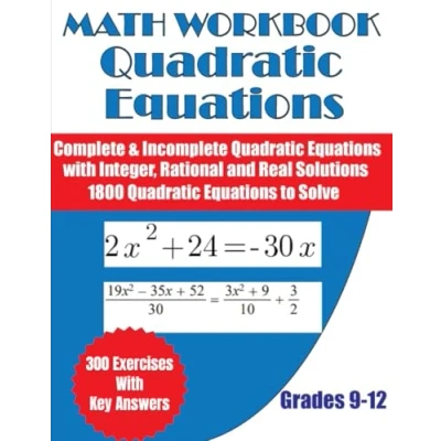 Math Workbook Quadratic Equations 300 Exercises with key Answers for Grades 9 12: Complete and Incomplete Integer, Rational Real Solutions 1800 to Solve