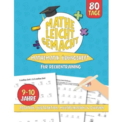 Mathe leicht gemacht Übungsheft für Kinder 910 Jahre: Umfassende, abwechslungsreiche schriftliche und Kopf Rechenübungen in 80 Tagen (Addition, Subtraktion, Multiplikation Division)
