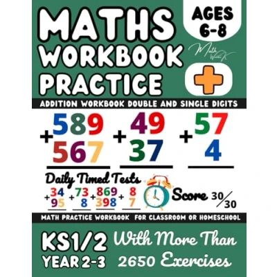 Maths Book Year 2 3, Ks1 KS2, Addition Workbook Suitable for Kids Ages 6 8 Years Old, Digit 3 Digit, Learn to Add, Grades 1