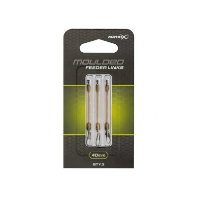 Matrix Moulded Feeder Link - Convenient all-round feeder link - Available in different lengths - Number of pieces: 3 - Unique design with a swivel and link in a molded stem - Transparent khaki color for underwater camouflage - Stem is molded of extremely durable, yet flexible plastic Feeder link with unique design that minimizes all risk of knots. The plastic stem, as it were, pushes the underline away from the link. The swivel is sturdy and can handle heavier baskets just fine.