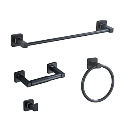 Matte Black Bathroom Hardware Set 4 Pieces,Towel Bar Stainless Steel Wall Mounted, Includes 16In Hand Towel Bar, Ring, Robe Hooks,Toilet Paper Holder, Rack