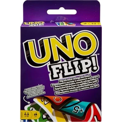 UNO FLIP! is the classic card game you know, now with an exciting new twist! A double-sided deck and special FLIP card give classic gameplay a competitive edge. Play the special FLIP card and all cards are turned over, including the draw pile, to reveal an entirely new set of numbers and colors on the opposite side. UNO FLIP! also includes fun new action cards, like Draw Five and Skip Everyone. Colorblind accessible! Special graphic symbols have been added to each card to help identify the color(s) on that card. This will allow players with ANY form of color blindness to easily play! UNO FLIP! Tin is perfect for adults, teens and kids 7 years old and up. The fun family card game comes with 112 cards and instructions., Manufacturer: Mattel