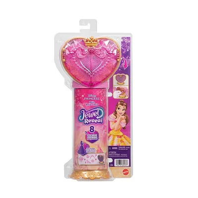 Mattel Disney Princess Belle Fashion Doll & Accessories with 8 Surprises, Including Heart Gem Box, Ring for Child 9 Pieces, Inspired by Movie, JHL51