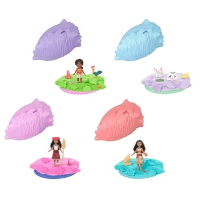 Mattel Disney Vaiana Surprise Small Doll or Animal Figures with Shell Playset, Moldable Sand & 3 Accessories, Inspired by Movie (Characters May Vary), JJV43