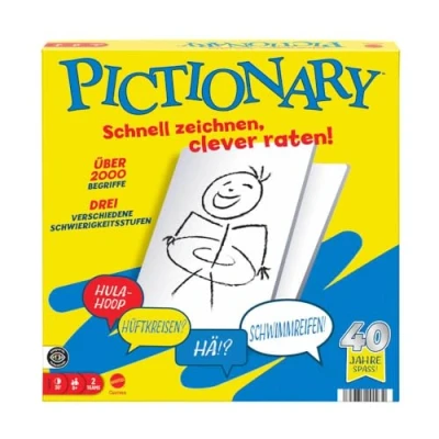 40 years of colouring and guessing fun with the classic drawing game for the whole family. With this board game for family evenings, children and adults can draw and guess. With 3 difficulty levels, drawing tips for younger players and step-by-step drawing tutorials. One player draws while the rest of the team guesses. On all play" rounds, both teams play at the same time. No drawing skills required. Great fun is pre-programmed when everyone is trying to guess the right answer. Pictionary is an absolutely entertaining board game for family or game nights., Manufacturer: [Mattel]