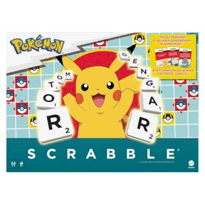 Mattel Games Scrabble Pokémon The Crossword Board Game with 50 Characters Challenges, Double Sided Two Modes, Italian Version, 8+ Years, HXT30
