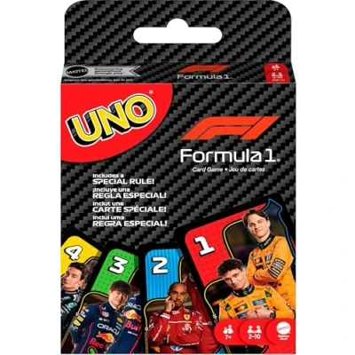 Mattel Games UNO F1 Card Game for Kids, Families, Travel & Camping, Deck Features Images from the World of Formula 1 Racing, JMF10