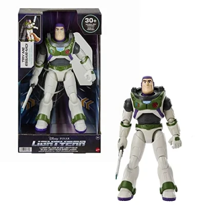 With this authentic, detailed figure with exciting lights and sounds inspired by the film, children can relive exciting space exploration, conflicts and teamwork from Disney and Pixar's Lightyear. The legs can be squeezed to hear the dynamic sword in action, for lights, fun and dramatic lines from the movie and adventurous effects. Over 30 sound effects in total Fans can recreate dynamic scenes and well-known movements with the 13 articulated joints of this large Buzz Lightyear figure in their Space Ranger Alpha suit, which is 29 cm standing height. This figure will inspire any creative battle and exploration adventure. Other Lightyear-inspired toys are also available that fans can recreate the entire exciting space saga. All items sold separately. These figures make a great movie-inspired gift for action figure lovers and fans of Lightyear aged 4+. Target gender: male, Manufacturer: Mattel