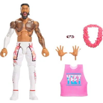 Mattel WWE Elite Action Figure & Accessories, Series #124 Set, 6 inch Collectible Jey Uso with 25 Articulation Points Swappable Hands, JHT68
