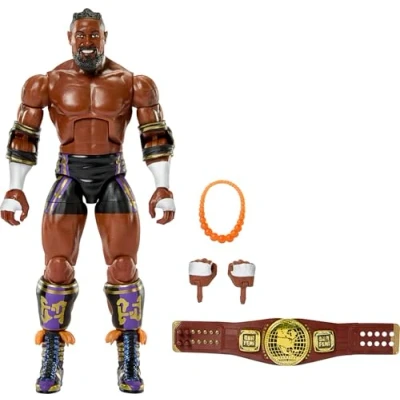 AUTHENTIC COLLECTIBLE: Official WWE Elite Collection Series 121 action figure with championship belt accessory and premium articulation DETAILED DESIGN: Highly detailed figure featuring authentic ring attire, including black shorts with purple accents and signature orange beaded necklace ACCESSORIES INCLUDED: Comes with championship belt accessory and detailed ring gear, perfect for recreating iconic moments POSEABLE FIGURE: Multiple points of articulation allow for dynamic pose options and realistic wrestling action scenarios DISPLAY QUALITY: Premium packaging and collector-focused presentation make this figure ideal for both play and display, Manufacturer: Mattel
