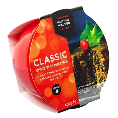 OVER A CENTURY OF TRADITION: Since 1899, Matthew Walker have been crafting puddings with authentic recipes that bring festive heritage to every Christmas table VEGAN RECIPE: Fully suitable for vegans, prepared with carefully chosen ingredients to deliver an inclusive dessert that still feels luxurious and indulgent RICH FLAVOUR: Balanced fruits and spices create a moist texture and rich taste, offering a traditional pudding that makes every Christmas meal feel special CONVENIENT SIZE: At 400 g, this pudding is perfect for smaller gatherings, couples, or family meals, while still maintaining authentic festive indulgence EASY TO PREPARE: Simply steam or microwave for a quick yet traditional dessert, offering the flavour of homemade pudding with modern-day convenience