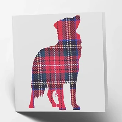 Maturi Border Collie Tartan Greetings Card Blank Inside, 15.5 x cm Square