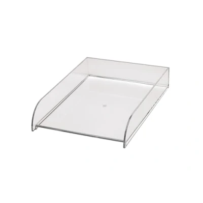 Desk Shelf for organizers of paper and documents and at the side. Several storage baskets can be stacked, either vertical or Treppenförmig, the contrast edge ensures the support. Very stable and a high structural integrity is supported by a material thickness of 0.4 mm. The caddy is made of high quality, crystal clear acrylic. Thanks to the timeless design blends the letter tray blend in to every desk – environment.