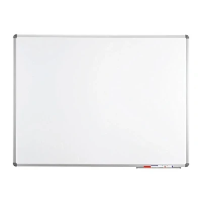 The 45 x 60 cm whiteboard has a magnetic surface made of plastic-coated sheet steel The surface can be written on with whiteboard markers and is excellent to wipe dry, making it ideal for frequent use The magnetic board is lightweight and stable thanks to the frame made of silver-anodised aluminium The board is suitable for use in landscape or portrait format, the mounting material is included With the practical, 25 cm long aluminium storage tray, markers or blackboard wipes are always at hand