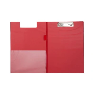 Handy clipboard folder made of sturdy cardboard with plastic covering, thus light and robust Powerful: Flat, nickel-plated clip with recessed handle, which facilitates the opening of the clamp Convenient: with retractable suspension hook for ease of storage Maximum clip opening approx. 0,9 cm (approx. 50 sheets DIN A4, 80gr paper) The cover of the foldover protects against prying eyes