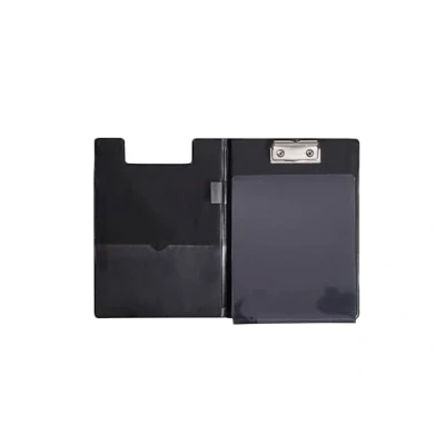 The practical clipboard folder is made of cardboard with plastic covering, the integrated plastic sheet provides a good carbon-copy protection for documents in A5 size, hence it is suitable for many applications. With the transparent carbon-copy protection, The clipboard folder is particularly suitable for forms or tables. Moreover, you can easily store business cards, flyers or notes in an inner pocket in the lid. Thanks to the extractable suspension eye and practical pen holder loop, the clipboard folder can be used for example in offices and workshops to display work plans or by field staff for lists and forms. The clipboard folder is equipped with a strong, flat metal clip and its clamping width of approx. 8 mm. Offers a firm hold The dimple handle avoids slipping of the fingers during use and Provides a secure grip.