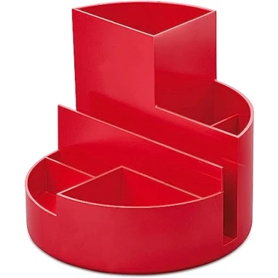 Maul Desk Organiser Round Box Eco Made of 85% Recycled Plastic for Storing Pens, Scissors and Note Card Practical Shelf Office Red