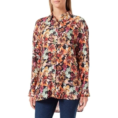Mavi Women's Printed Oversize Shirt Blouse, Orange, Large