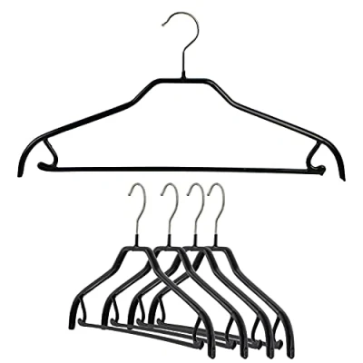 Hanger for pants, tops or skirts; pair together outfits for organizing, bar allows pants to be hung or use the hooks for skirts; measures 16" x 3/8" Carefully formed to preserve garments, eliminate shoulder bumps and provide collar support Made from German cold-rolled steel for durability and strength, hook swivels for convenience Space efficient design maximizes closet space by as much as 40 percent Non slip coating is non-toxic and keeps clothes on the hanger and clothes hang uniformly to create an even look, patented swivel hook