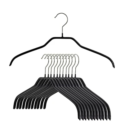 Non-slip hanger for hanging tops, dresses, pull over and light jackets; measures 16" by 3/8" Carefully formed to preserve garments, eliminate shoulder bumps and provide collar support Made from German cold-rolled steel for durability and strength, hook swivels for convenience Space efficient design maximizes closet space by as much as 40 percent Non slip coating is non-toxic and keeps clothes on the hanger and clothes hang uniformly to create an even look, patented swivel hook; hook measures 1 1/2" wide