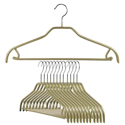 MAWA by Reston Lloyd Silhouette Series Non Slip Space Saving Clothes Hanger with Bar & Hook for Pants and Skirts, Style 41/FRS, Set of 12, Gold