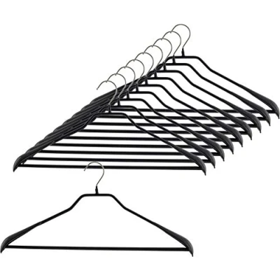 MAWA Hanger for Clothes, Bodyform LS, Set of 10, with Trouser Bar Outerwear, Coats, Jackets and Pants, 360 Rotatable, Anti slip coating, 42 cm, Black