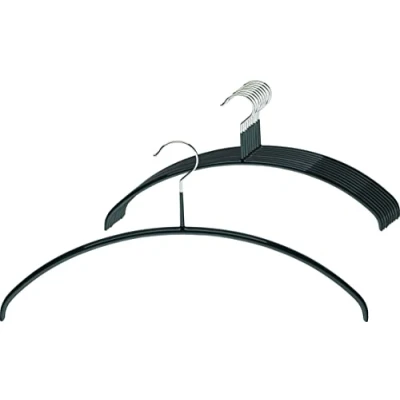 MAWA Hanger, Set of 10, Slim, Thin, Space saving, Non slip, Round shaped Hanger Perfect for T shirts and Jumpers, 360 Swivel Hook, Anti slip Coating, 40 cm, Black
