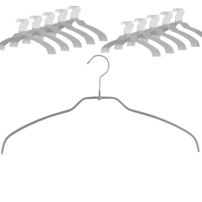 MAWA Light Clothes Hangers, Set of 100 50% Space Saving and Non Slip Ideal for Shirts Blouses, with 360 Rotating Hook Coating, 42 cm, Silver
