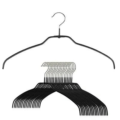 MAWA Reston Lloyd Silhouette Ultra Thin Series, Non Slip Space Saving Shirt Hanger, Style 42/FT, Pack of 20, Black, Alloy Steel PVC Plastic Chrome Plated